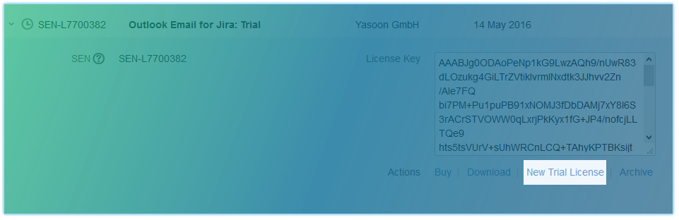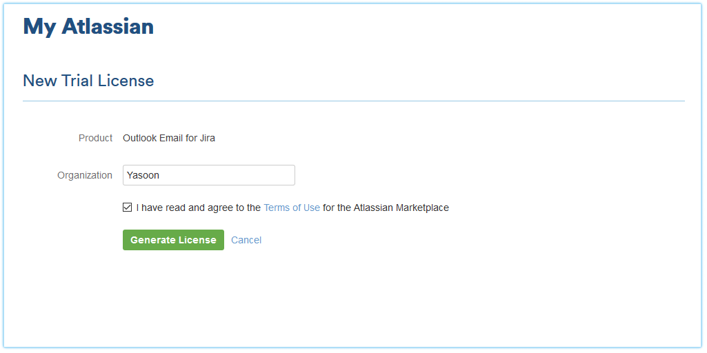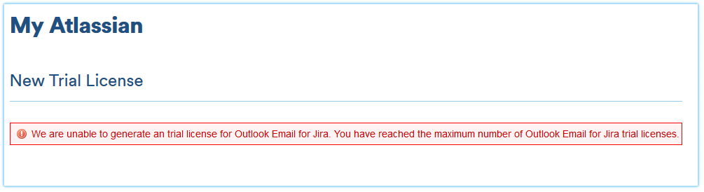 This guide explains how to create a new trial license for Outlook Email for Jira.