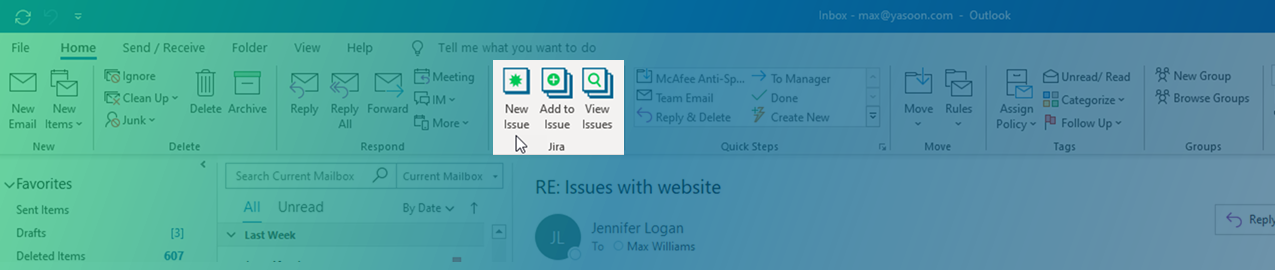 Outlook Email for Jira comes in two different Outlook add-ins. If you are using Office 365, we recommend the modern Office add-in.