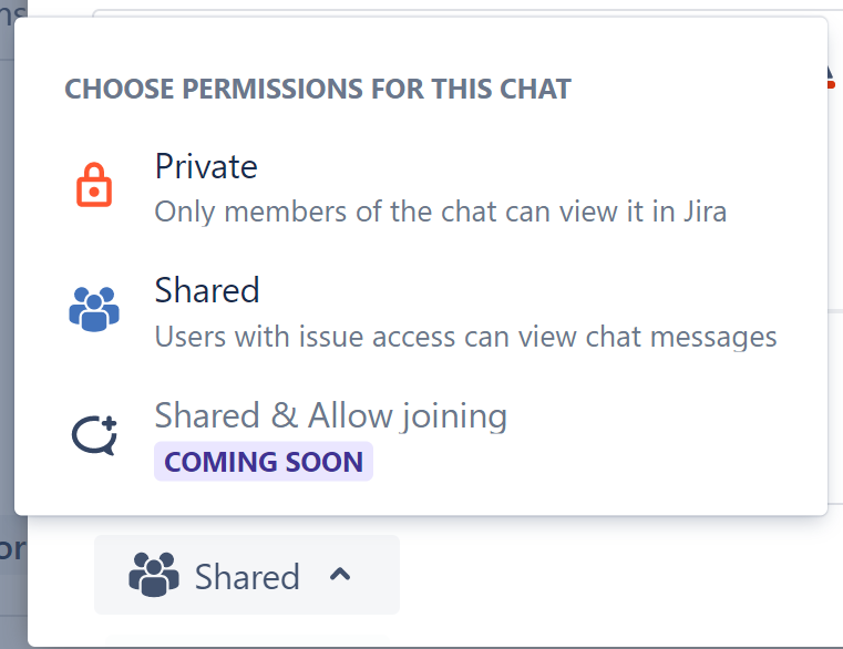 Chat sharing: You can now allow other Jira users to join a chat on their own