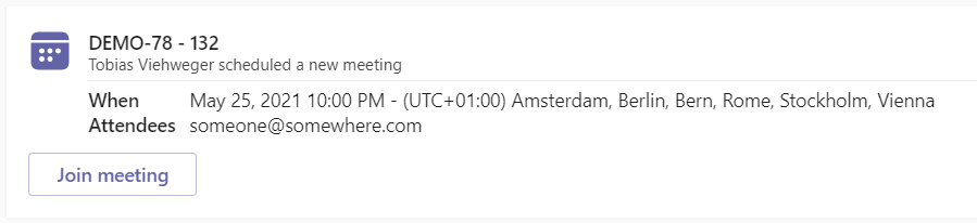 When scheduling a meeting using our Outlook Meetings for Jira app, we will now post a well-formatted card instead of the long comment to all linked Teams conversations
