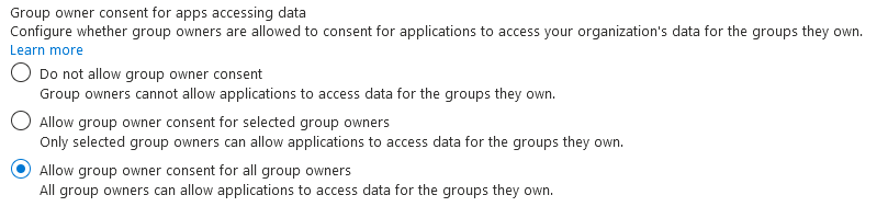 In case your administrator has disabled this option, it’s possible to turn it back on. To do so (as an Microsoft 365 administrator), please go to the following page in the AzureAD portal (Enterprise applications > User settings → User and Consent Settings):