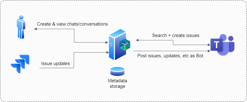 All service connections are done via our cloud backend - same as for any other Jira Cloud app on the Atlassian Marketplace. The following diagram shows the high-level architecture. Microsoft Teams does not allow connecting to Jira directly, therefore all connections to and from Microsoft Teams have to go through our servers.