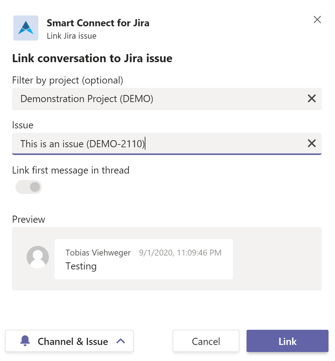 Link Jira issue to message in Teams