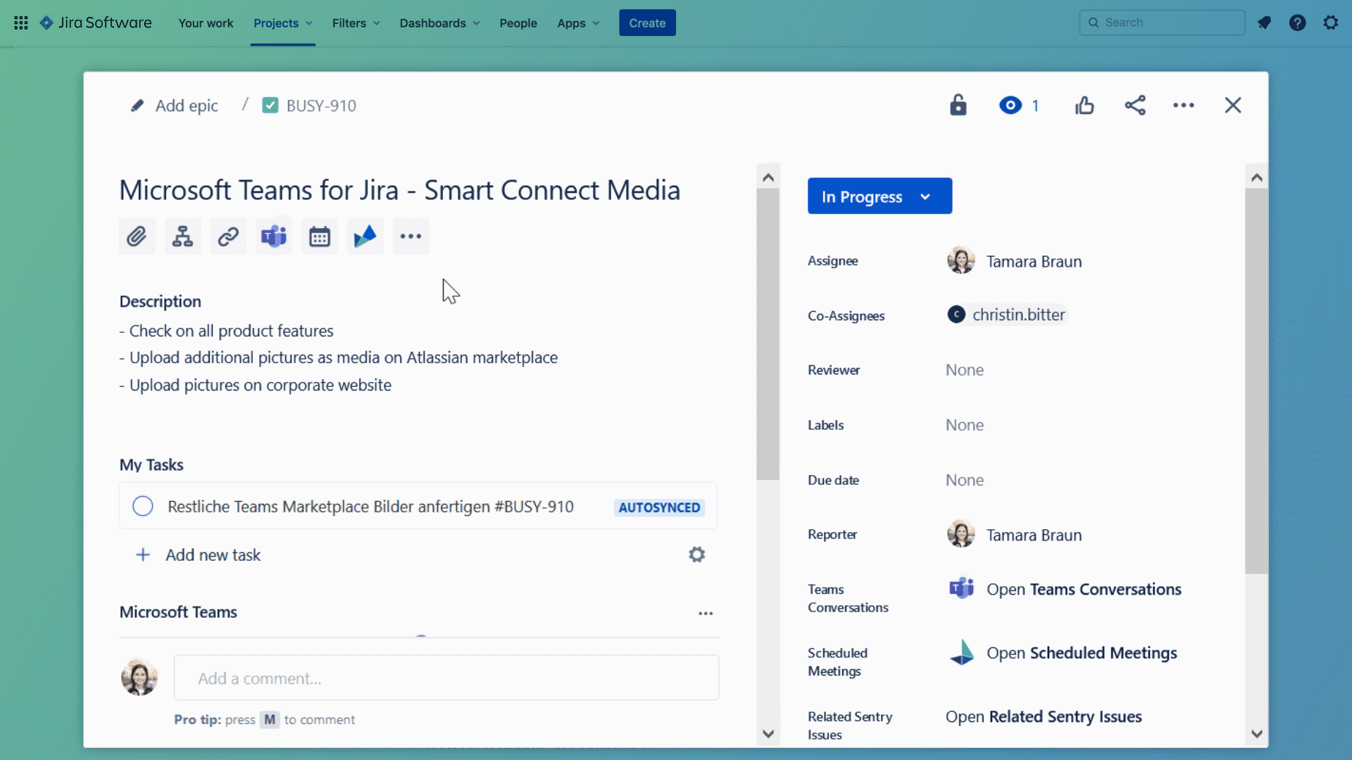 After your customers raised a new service request, get back to them much quicker by starting a new Teams chat from Jira. You’ll notice improved response times and much quicker ticket resolution.