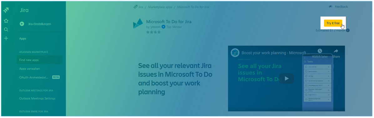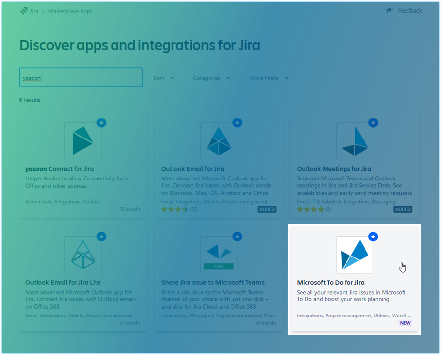 Search for Microsoft To Do for Jira or for yasoon and click on it.